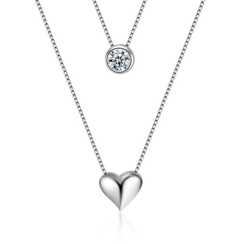 XIYANIKE Silver Color Necklace Double Layer Chain Zircon Heart Pendants Necklaces For Women Gift kolye Choker 2019 New – Sumsfashion
